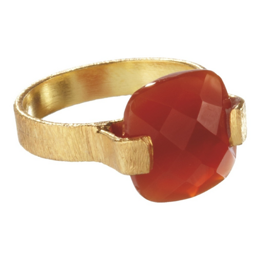 • Orange Onyx 18k Gold Plated Square Ring - Size 7