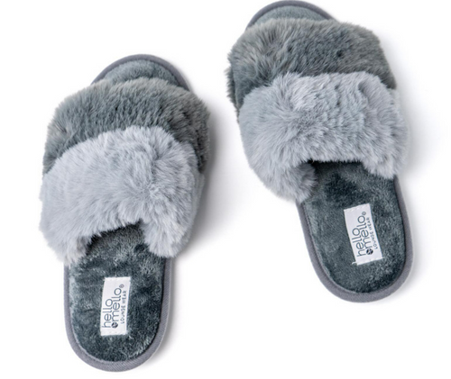 Hello Mello Cotton Candy Puff Slippers in Gray