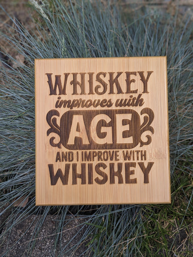 Engraved Bamboo Whiskey Stone Box Set