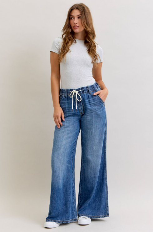 • Judy Blue High Waist Palazzo Featherweight Rigid Magic with Elastic Waistband - Plus + Regular