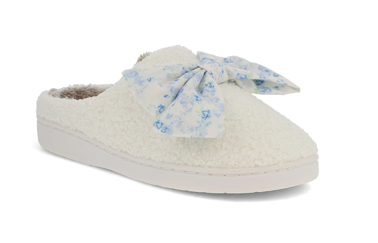 MIA Cozi Floral Bow Slippers in Ivory + Flora Blue